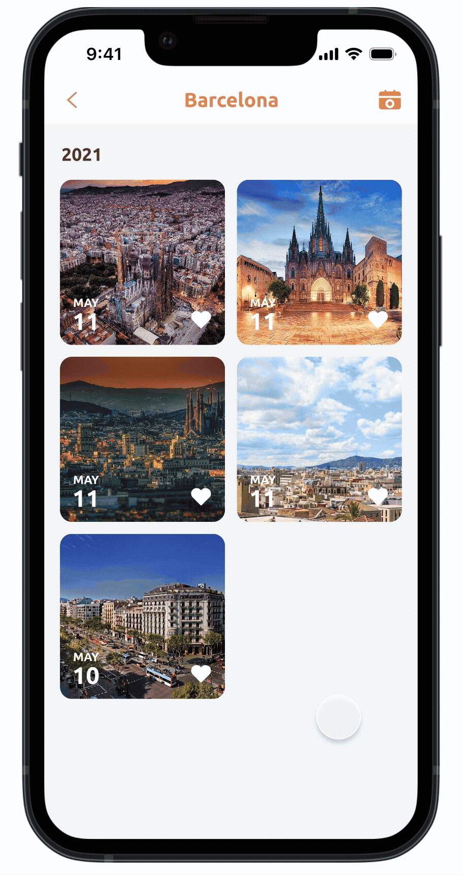 Users can view which days they documented their lives on the monthly and yearly timeline views, turning their memories into visual patterns. They can also get a glimpse of each day’s memories through the content preview shown on the date cards.